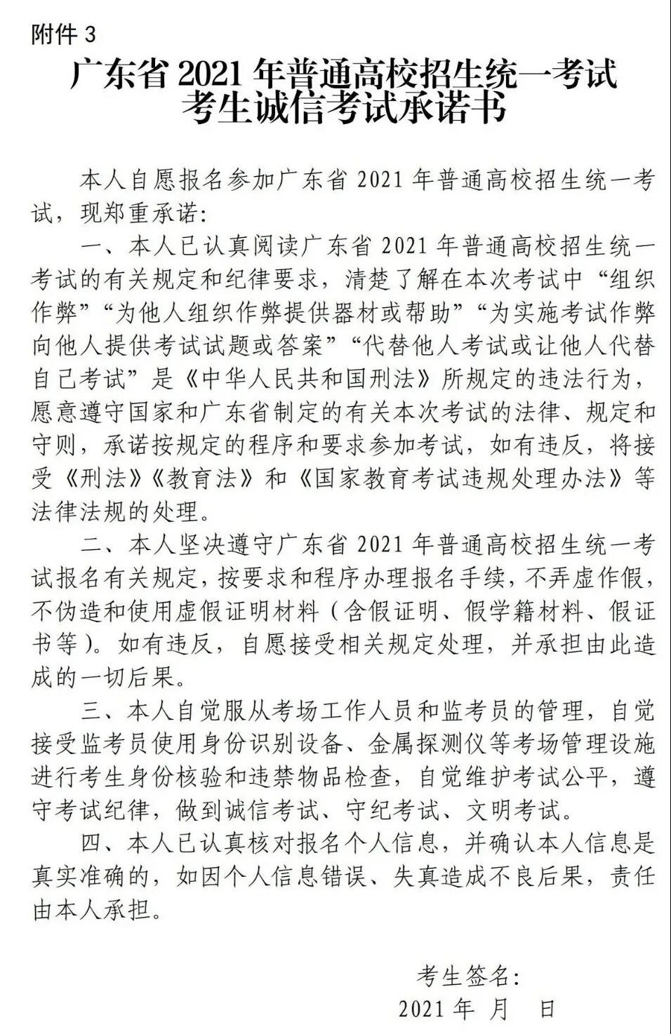3.广东省2021年普通高考补报名考生诚信考试承诺书