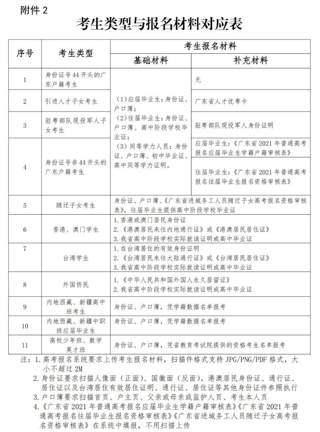 根据《关于广东省2021年普通高校招生统一考试报名有关事项的通知》(粤招〔2020〕11号)、《关于做好广东省2021年普通高校招生统一考试报名工作的通知》(粤招〔2020〕12号)的要求,我省2021年普通高考报名工作于2020年11月1-10日进行,绝大部分符合报考条件的考生已完成报名。为满足退伍军人、运动训练及武术与民族传统体育考生、高职院校自主招生考生等符合我省高考条件,因各种原因尚未参加高考报名人员的需求,经研究决定安排一次高考补报名。有关事宜,快来看看。