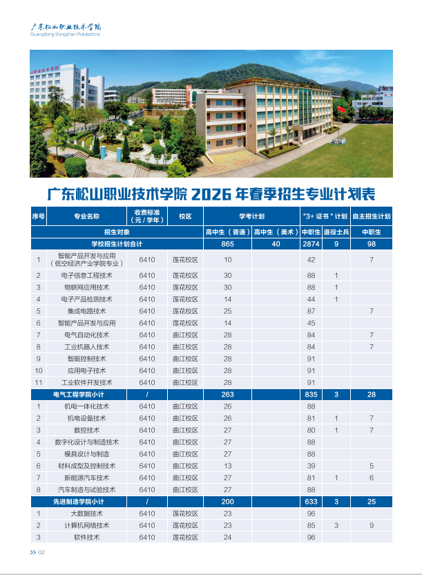 广东松山职业技术学院2026年春季招生计划